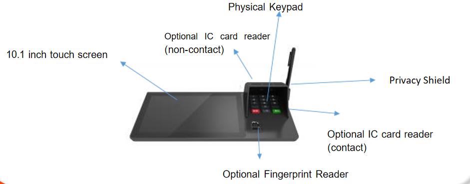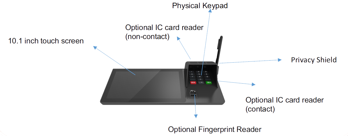 ● Multiple peripheral extensions supported, like contact IC card reader, non-contact IC card reader and fingerprint reader