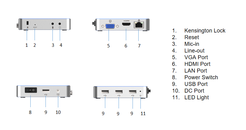 Small size, fan-less design, VESA mountable, anti-theft kensington lock.
